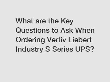 **What are the Key Questions to Ask When Ordering Vertiv Liebert Industry S Series UPS?