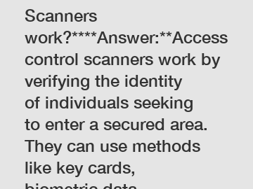 **How do Access Control Scanners work?****Answer:**Access control scanners work by verifying the identity of individuals seeking to enter a secured area. They can use methods like key cards, biometric